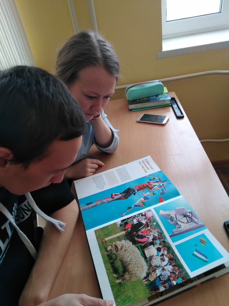 Ребята ознакомились с творчеством художников А.Д. Бурзянцева, А.Э.Тюлькина, К.С.Давлеткильдеева, Р.М.Нурмухаметова, отразивших на своих полотнах историю и культуру народов Башкортостана. Затем ребята поделились своими знаниями о замечательном празднике, который объединяет все народы Башкортостана, празднике - Сабантуй.