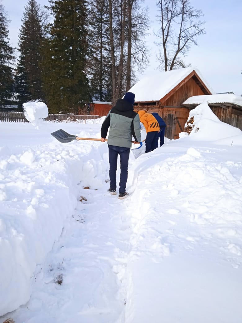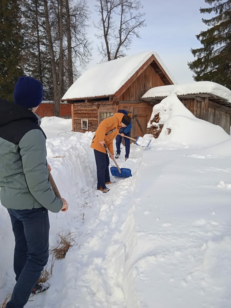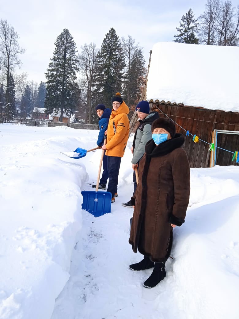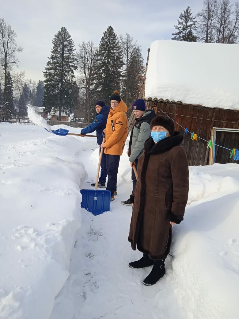 Обучающиеся 9б класса вместе с классным руководителем Шайдуллиной Надеждой Альбертовной посетили педагога-ветерана Асадуллину Гульзиян Саляхетдиновну. Мальчики помогли очистить двор от снега. Молодцы, ребята!