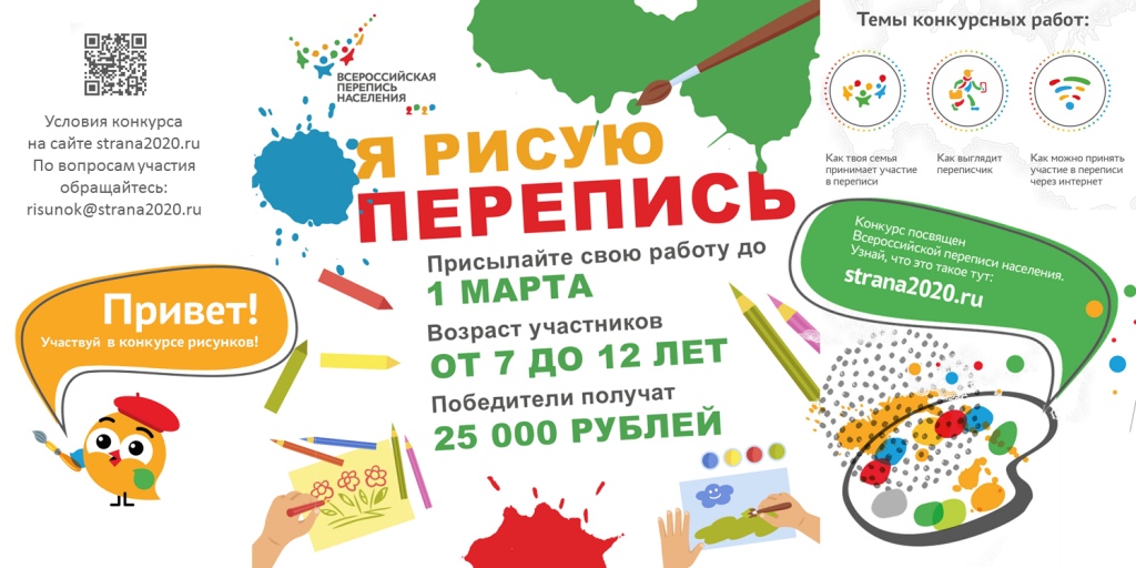 Конкурс детского рисунка, посвященный Всероссийской переписи населения. Нарисуй, как твоя семья участвует в переписи, изобрази свой дом, улицу, достопримечательности родного города или поселка с символикой Всероссийской переписи населения.