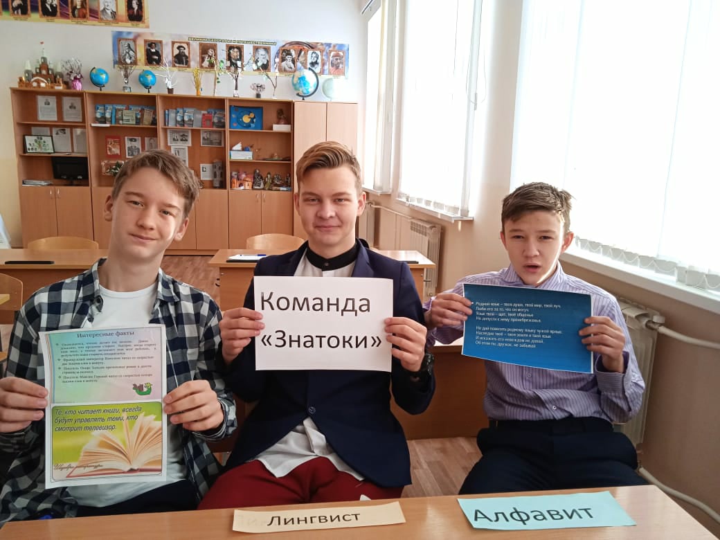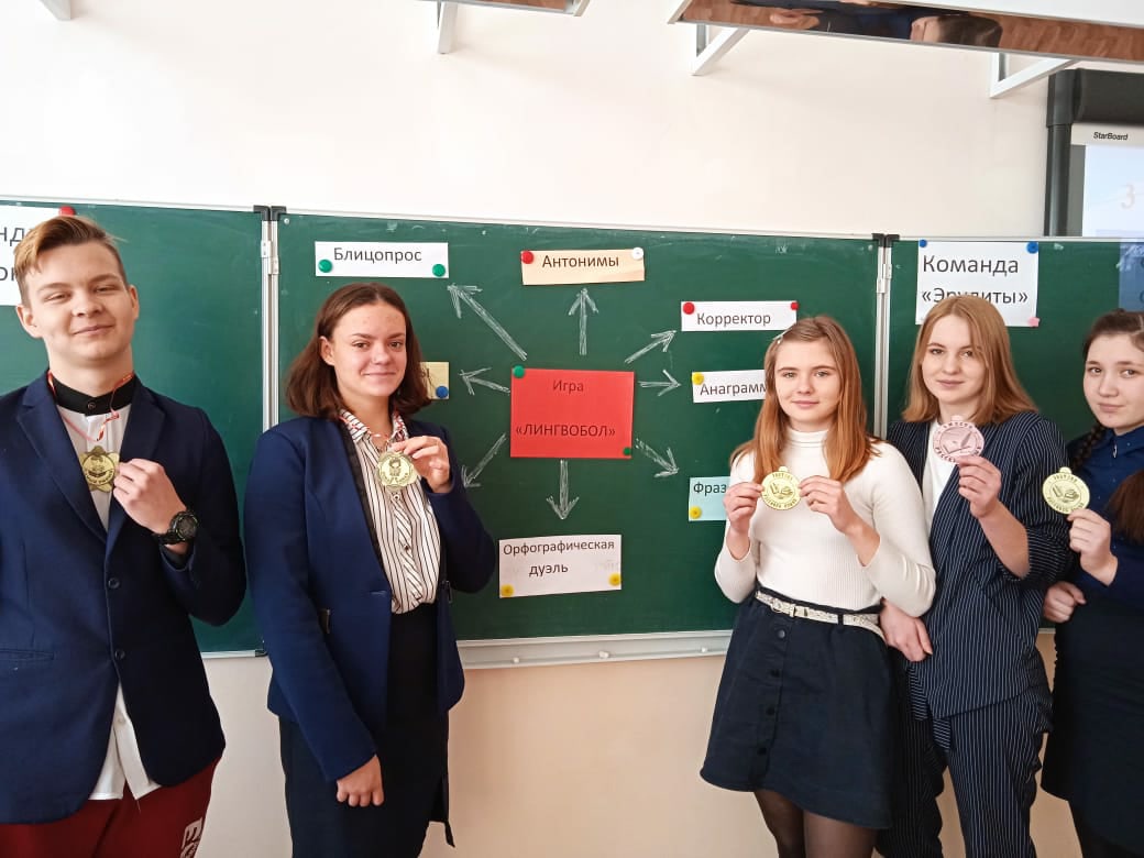 Команда девочек"Эрудиты" опередила в баллах команду мальчиков "Знатоки". Ребята соревновались в знаниях по русскому языку, проходя этапы "Ребусы", "Анаграммы", "Антонимы", "Пословицы", "Орфоэпическая и орфографическая дуэли". Команда "Эрудиты" награждена медалями "Знатоки русского языка", среди мальчиков такую награду за правильные ответы получил Абдуллин Артем.