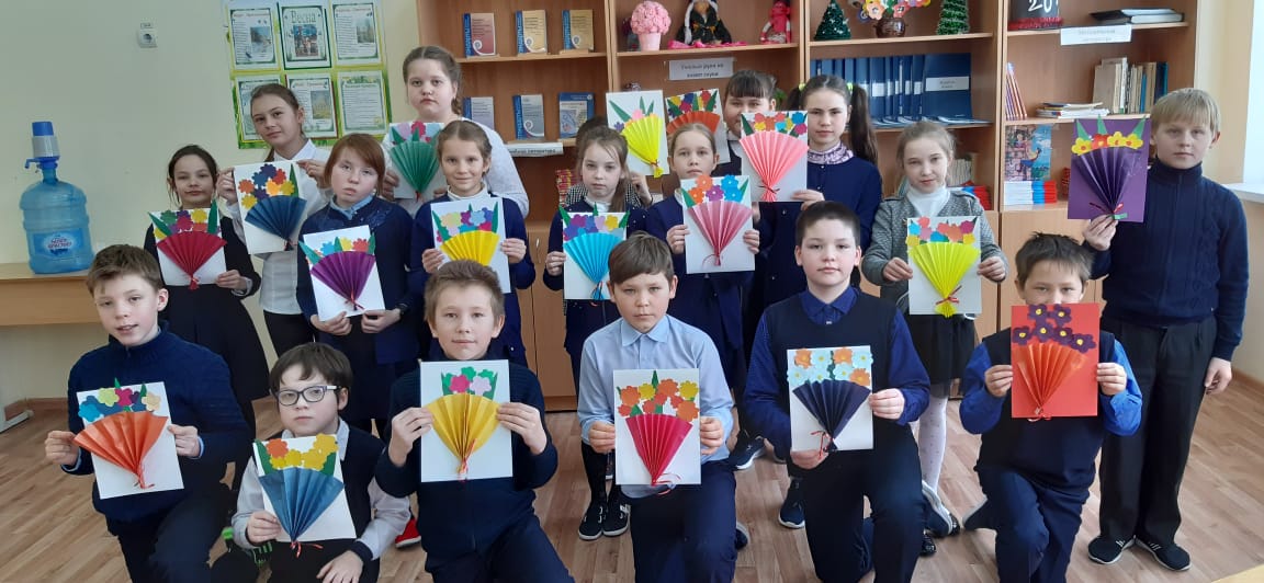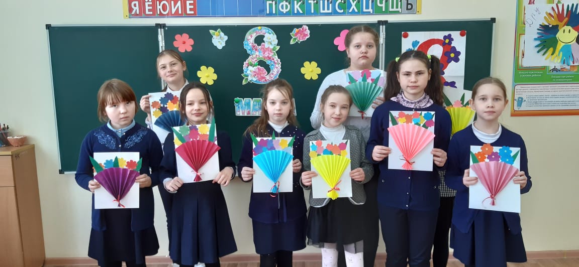 "Весенняя открытка". Ученики 4 класса. Классный руководитель Мальцева Татьяна Александровна.