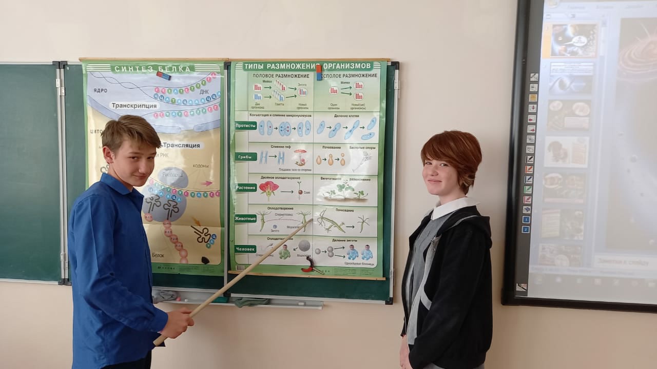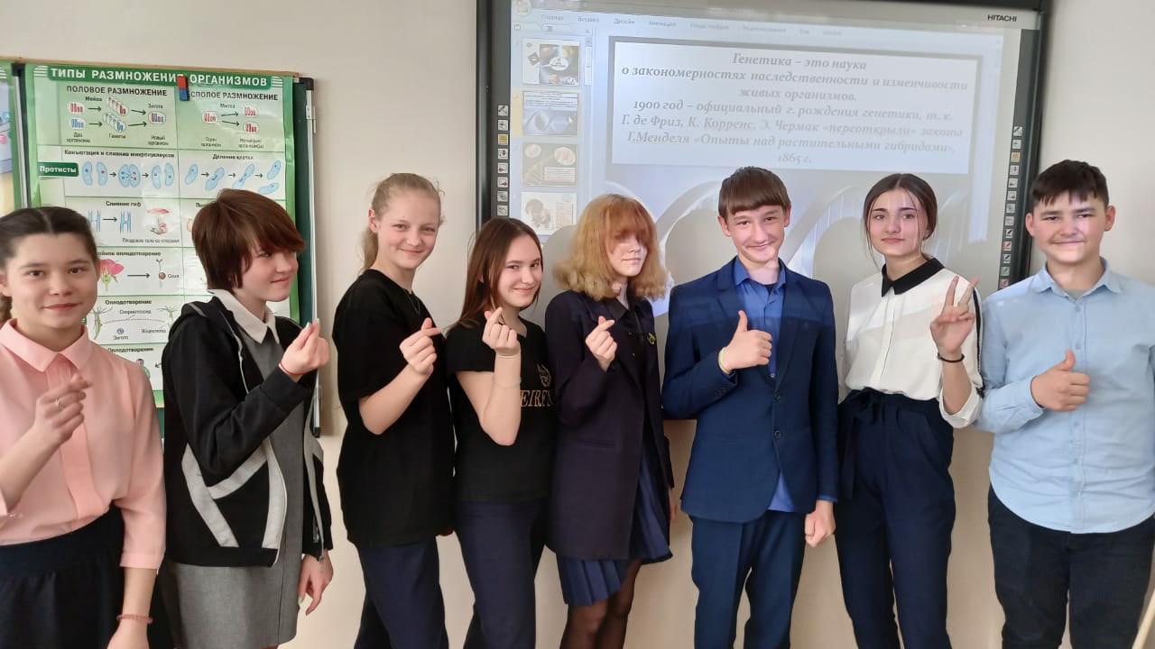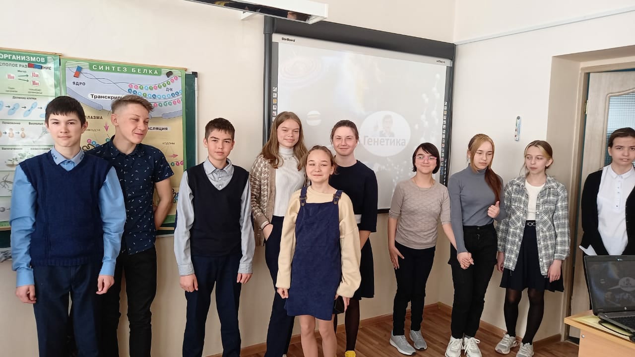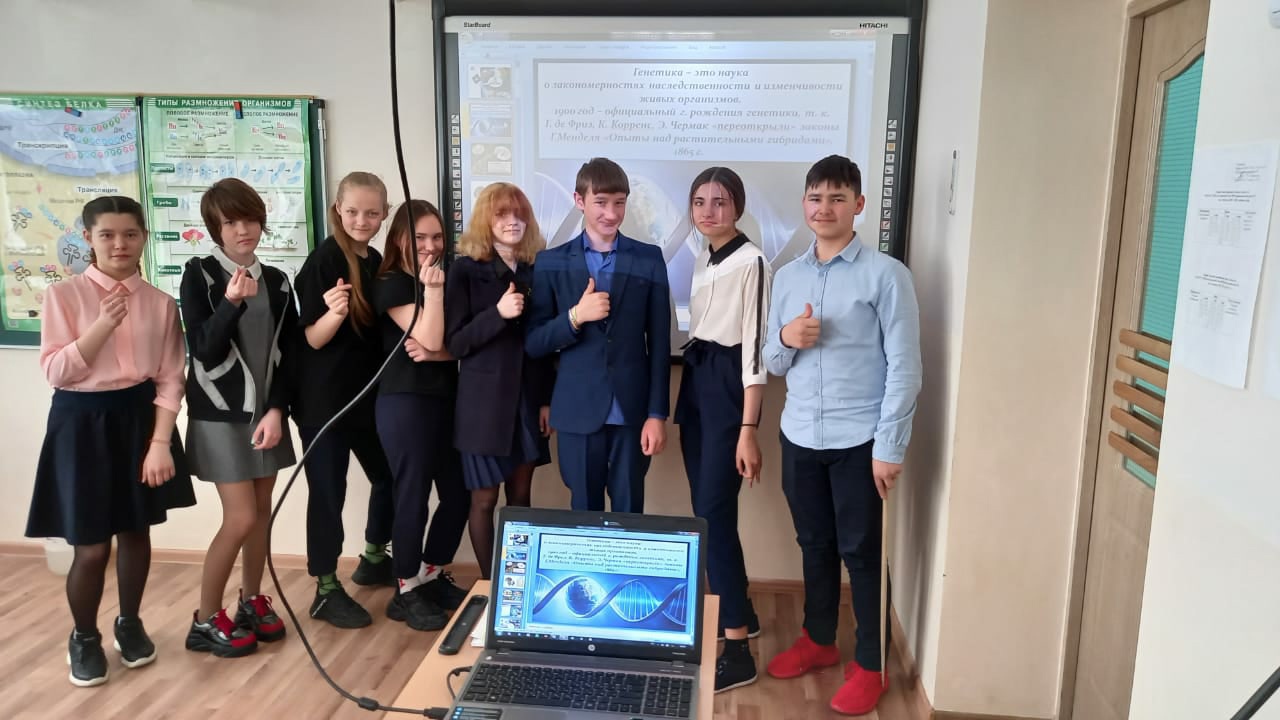 23 апреля учителя биологии Турышева Юлия Александровна и Ураева Фарида Анваровна провели в 7, 10 классах Всероссийские уроки генетики. Целью уроков является создание условий для устойчивого познавательного интереса к изучению генетики. На уроках обучающиеся познакомились с понятием "генетика", охарактеризовали проблемы генетической безопасности человека, узнали, что такое мутация. А также про виды хромосомных мутаций и способах профилактики и защиты.