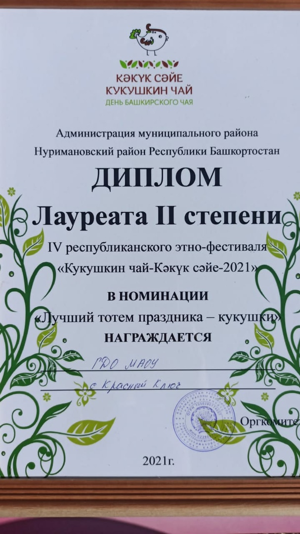 29 мая на территории Павловского парка прошёл IV республиканский этно-фестиваль «Кукушкин чай – Кәкук сәйе-2021». Сотрудники школы и ГДО приняли участие в мероприятии. По итогам фестиваля школа заняла 1 место в номинации "Лучшая чайная церемония". ГДО были награждены Дипломом 2 степени в номинации "Лучший тотем праздника - кукушки". Благодарим всех участников праздника!!!