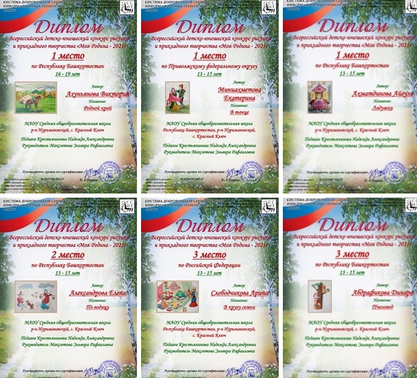 С большим удовольствием поздравляем наших девушек, ставших победителями и призерами Всероссийского детско-юношеского конкурса рисунка и прикладного творчества "Моя Родина - 2021"!
