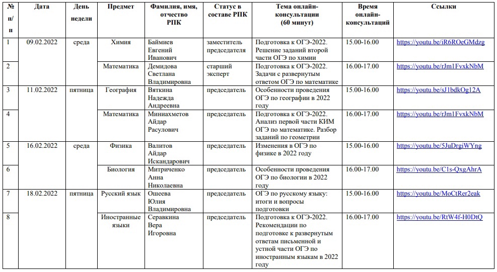 Видеозаписи консультаций доступны на страницах Рособрнадзора в социальной сети «ВКонтакте» https://vk.com/obrnadzorru, на YouTube https://www.youtube.com/user/rosobrnadzor, а также на портале электронного образования Республики Башкортостан https://edu.bashkortostan.ru/e-course/OO/189959/