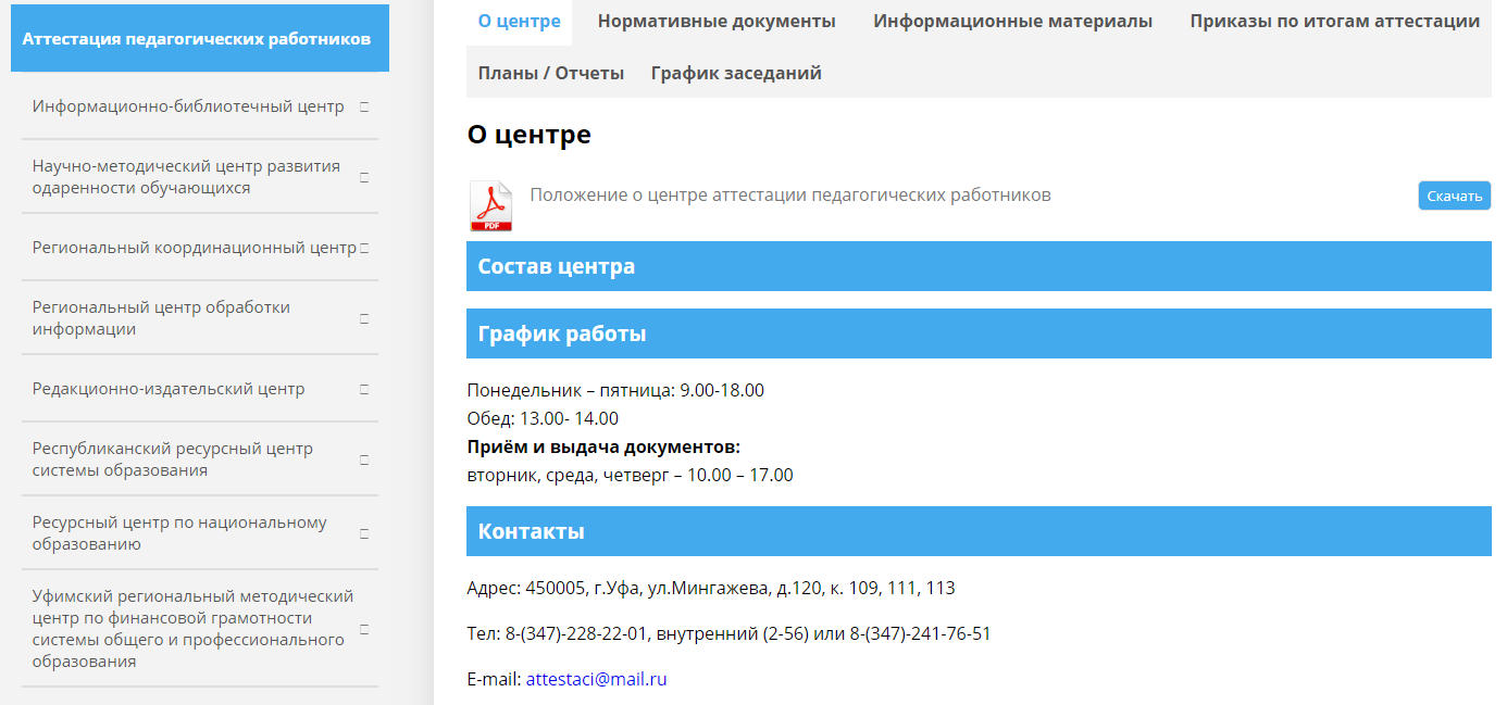 Положение о Центре аттестации педагогических работников